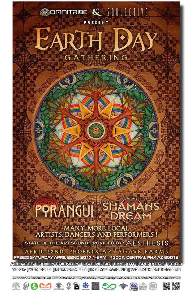 Come join us on Earth Day 2017 in Phoenix at Agave Farms on Saturday, April 22nd from 1 to 9 PM for music, workshops, yoga, family camp, drum circle, ecstatic dance, speakers, and healers…